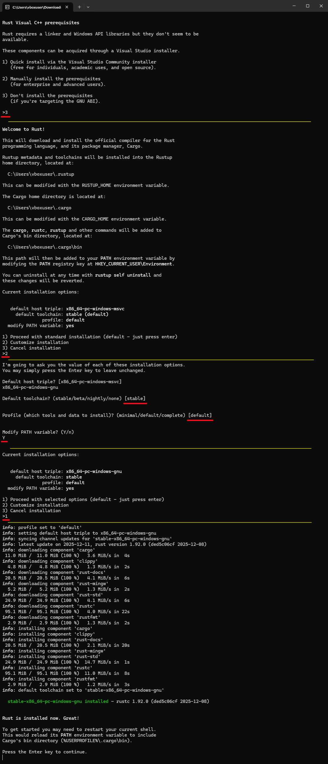 В следующих главах мы рассмотрим установку Rust и C++ тулчейна на Windows и Linux.