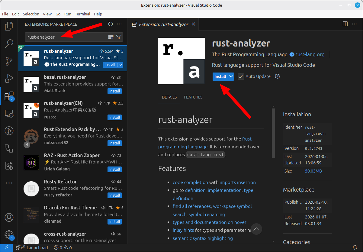 Установка Rust тулчейна осуществляется при помощи официальной утилиты rustup, а установка линкера и стандартной библиотеки C варьируется от операционной системы и C++ тулчейна.